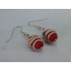 Bibbidi-Bobbidi-Boo: Hand-made (by me) red Polymer clay beads with a white swirl finished with silver-plated earring hooks.