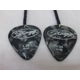 Black Music: Small black glass seed beads with black mottled guitar plectrums finished with surgical steel earring hooks.