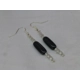 Blackbean: Black plastic oblong beads topped and tailed with three glass beads finished with silver-plated earring hooks.
