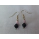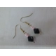 Casanova: Black plastic faceted bead topped with pale pink glass beads finished with silver-plated earring hooks.
