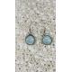 Depeche: Turquoise swirls on white background (paper) set into stainless steel pendant holder with glass cabochon and then finished with stainless steel earring hooks.