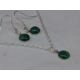 Duchess: Malachite cabochons set into silver-plated surrounds finished with silver-plated earring hooks. Matching Malachite pendant finished with a silver-plated chain.
