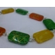 Garden Mix: A mix of green, yellow and orange rectangular plastic beads with gold swirl patterns finished with silver-plated lobster clasp.