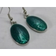 Genesis: Metal oval charms with bluey green enamel finished with silver-plated earring hooks.