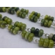 Green Vibes: Unique long green necklace consisting of thirty-six sets of three vibrant green beads finished with a silver-plated lobster clasp.