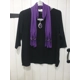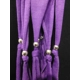 Hullabaloo: Purple scarf with teardrop shaped colour coordinated pendant threaded with metal beads at each end.