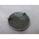 Iceni: Circular pewter Celtic-style pin-brooch with clear plastic cabochons set into it.
