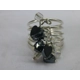 Mine And Yours: Clear glass beads and Haematite hearts finished on silver-plated five bar adjustable ring.