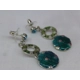 Mistaken Identity: Circular metal charms with blue and green enamel design finished with silver-plated stud earrings (flat plastic and metal backs)