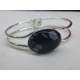 One Love: Snowflake Obsidian cabochon (2.5x1.8cm) set into silver-plated spring bangle.