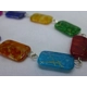 Rainbow Bright Mix 2: Plastic flat oblong beads (pink, dark blue, yellow, green, red,blue, orange, purple and cream) finished with silver-plated clasp.