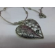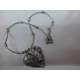 Two Hearts: Metal heart pendant with beautiful detail - half solid and the other half open - finished with curved metal tubes and spacer beads forming a semi-solid necklace with lobster-clasp fastening (with adjustable chain extender)
