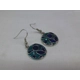 Westward: Circular metal charms with blue design finished with silver-plated earring hooks.